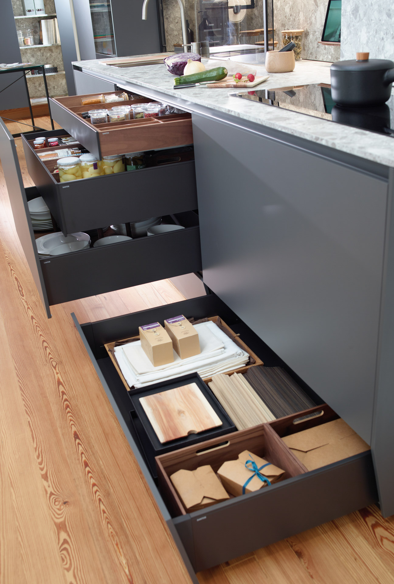 You can also download and consult the catalog of the latest collection of Santos kitchens: