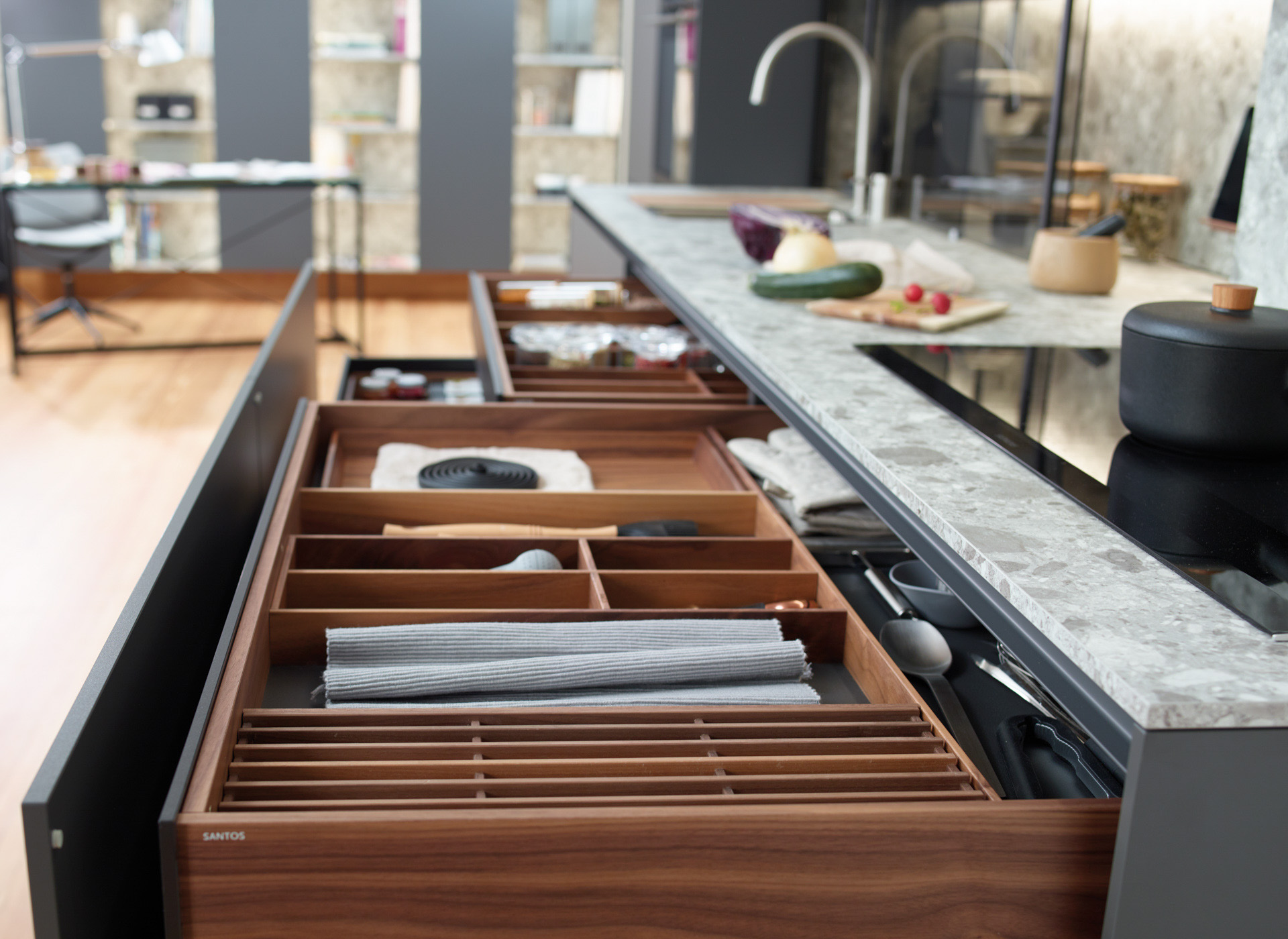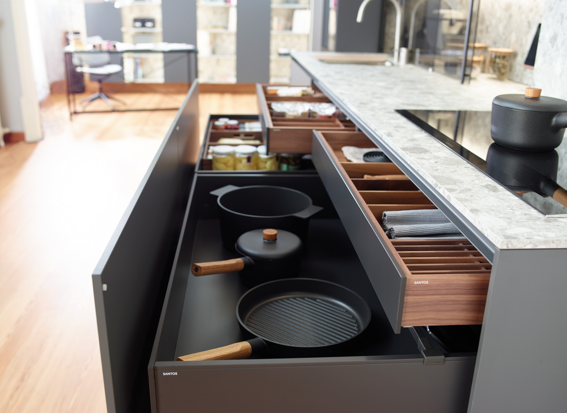 Visit our showroom and we will show you the many configuration and customization options for Santos kitchens. In addition, you will be able to check first-hand the quality of the finishes.
