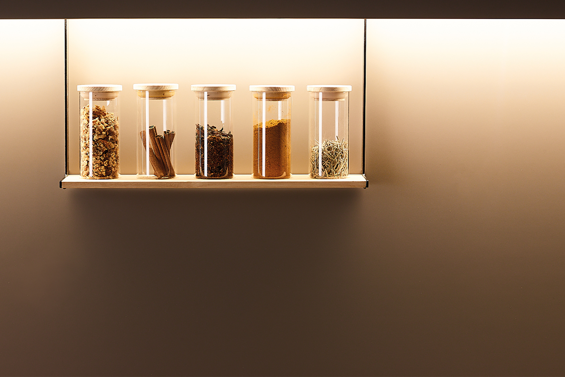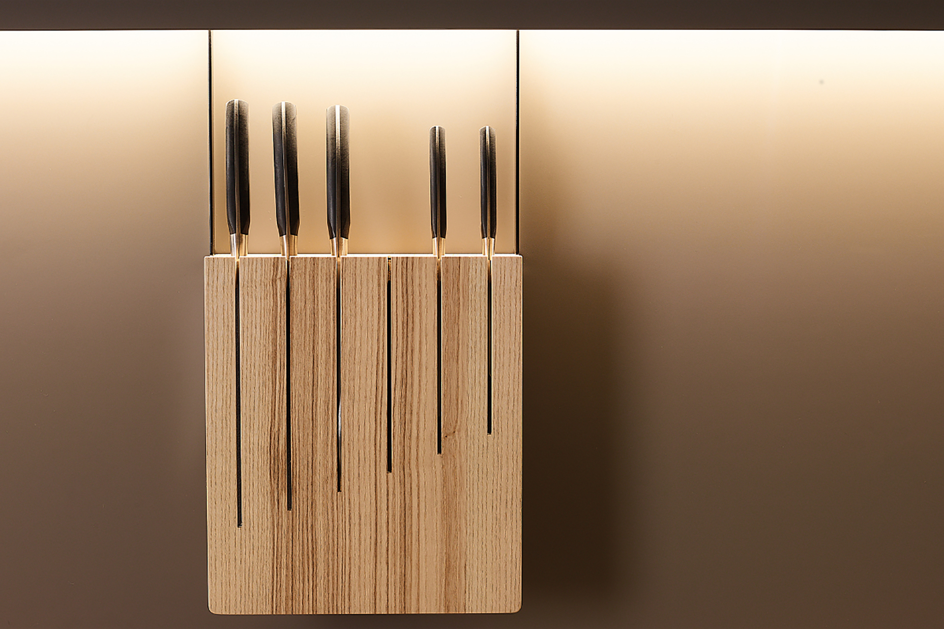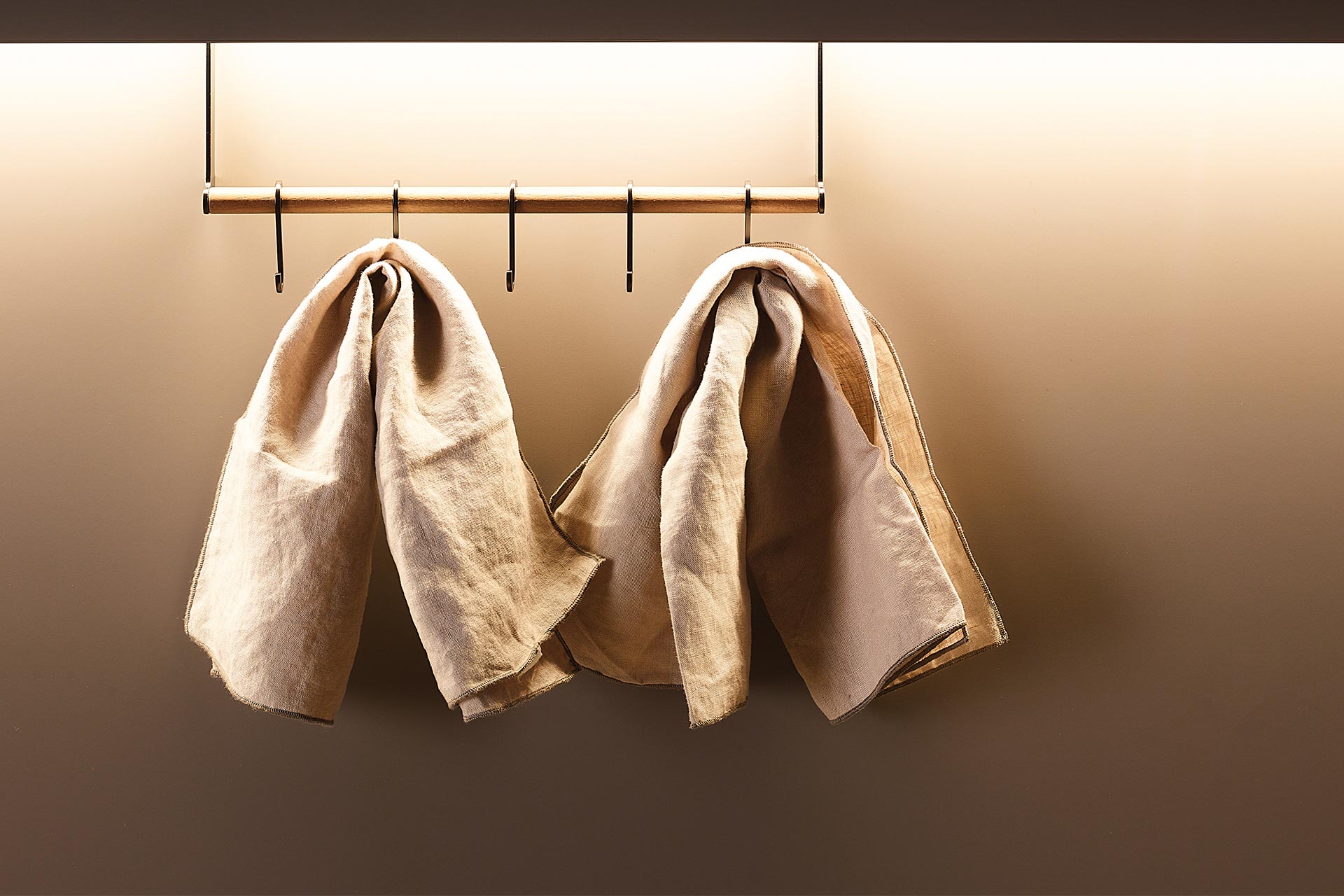 The LED lighting profile is one of the many options that Santos offers to illuminate work areas. This item has plugs and can be personalised with decorative panels. What’s more, it can be completed with exclusive and practical accessories made of olive ash or walnut wood, so that they are always in view and within reach: multipurpose racks, jar, book or tablet holders, spice racks, roll holders, bars with hooks and knife racks.