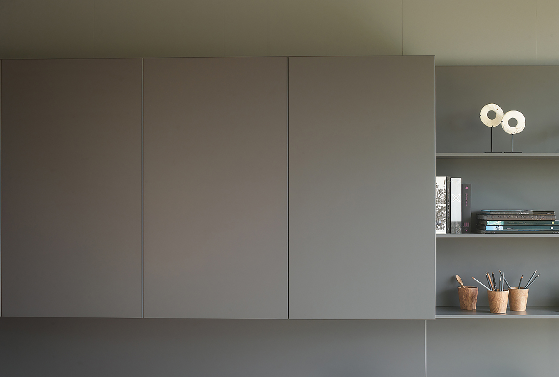 Combine tall units and panels with shelves, offering twice the possibilities for storage and organisation. The system’s interiors and exteriors can be customised with multiple finishes.